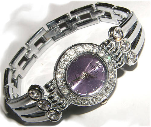 SILVER HANDS AND MARKERS POLISHED SILVER TONE BEZEL WITH WHITE CRYSTALS ADJUSTABLE SILVER BAND WITH WHITE CRYSTALS WILL FIT ANY SIZE BEZEL SIZE - 22mm STAINLESS STEEL BACK WATER RESISTANT