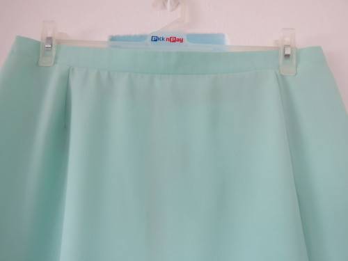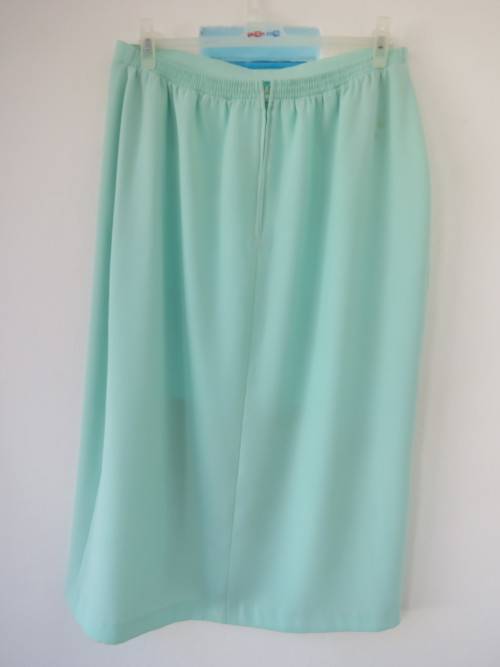 Elegant,light turquoise pencil skirt with slit on left front.By 'DONNA CLAIRE' in size 44/20 with elasticated waist back.In 100% wash and wear polyester fabric.As new