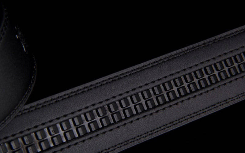 Enhance your look with this classic belt. This belt features an elegant buckle that is showcased on a split leather belt. Our belts do not have holes. They have rubber teeth on the back that slip into the buckle, locking it in place (like a zip-tie).