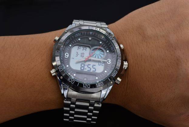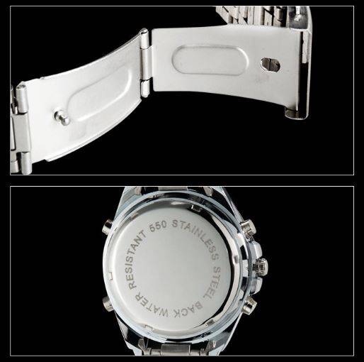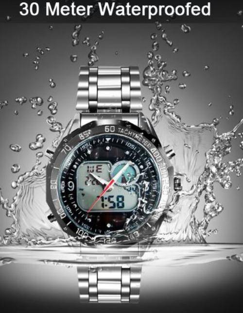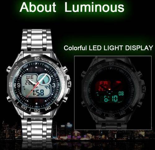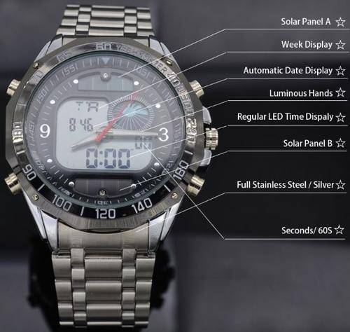 Elegant Military Mens Dual Solar Wrist Watch With Stainless Steel Strap - Black