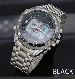 Elegant Military Mens Solar Dual Wrist Watch With Stainless Steel Strap - Black / White Face