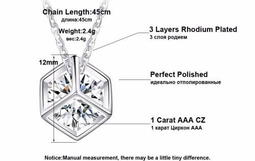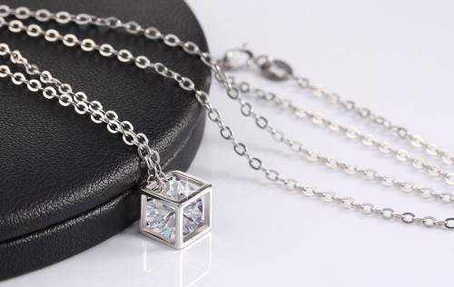 Elegant Platinum Plated Square Box 1ct AAA Cubic Zirconia Crystal Pendant Necklace