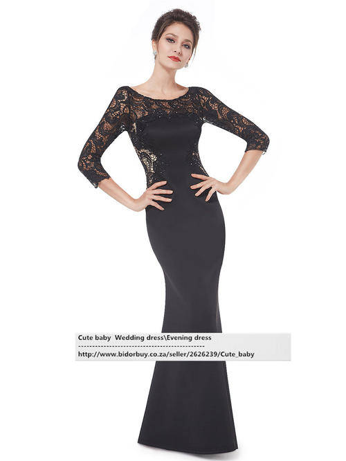 Women's elegant rhinestone 3/4 sleeve lace long evening dress.