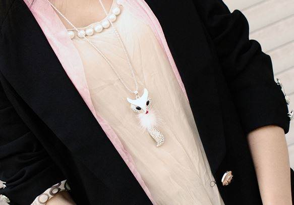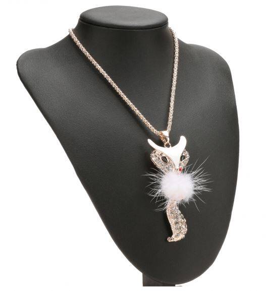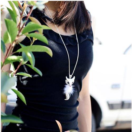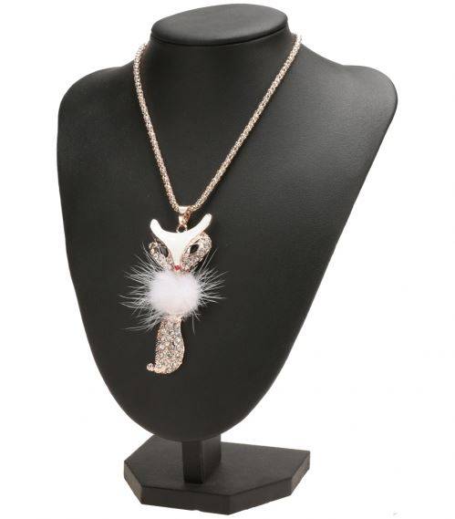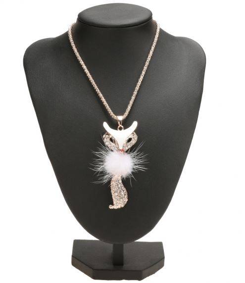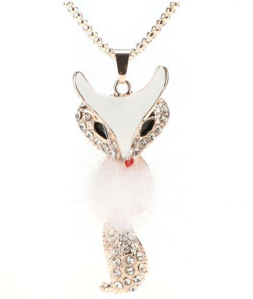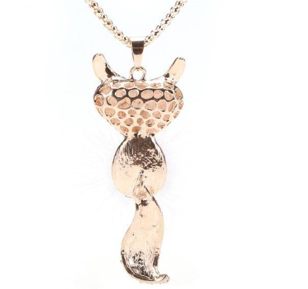 Elegant Rose Gold Necklace With Crystal & Feather Fox Pendant
