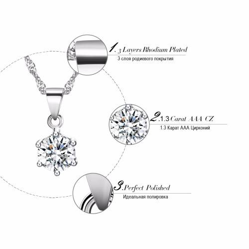 Elegant Silver Platinum Plated Necklace with 2ct Cubic Zirconia Crystal Pendant