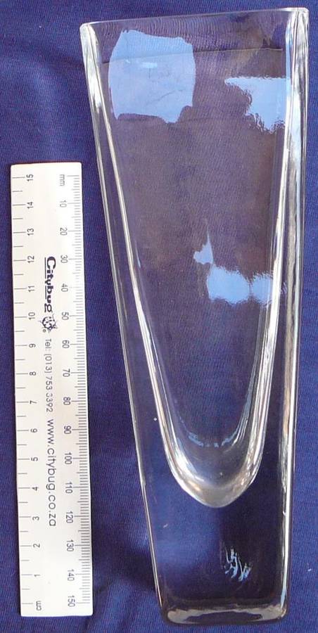 This is a very elegant vase, it is in excellent condition. It is 191 mm tall the top is 70 mm x 70 mm, the base is 38 mm x 38 mm and it weighs 695 grams.