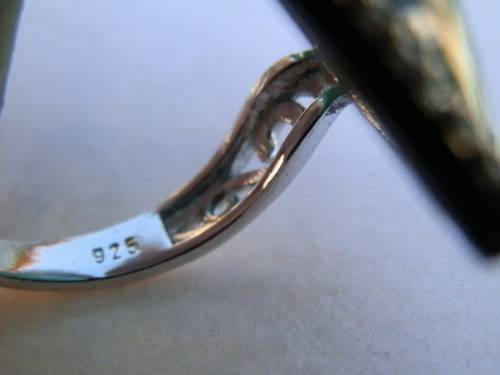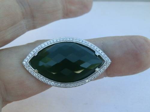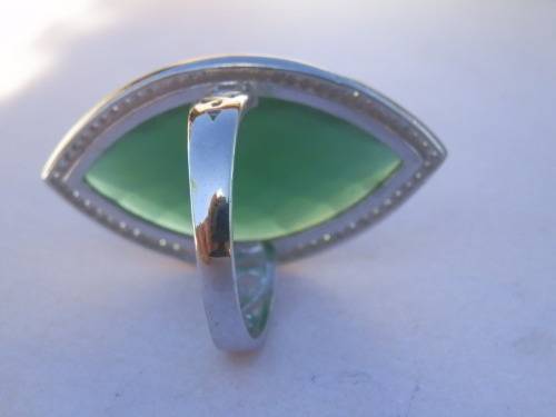 Elegant sterling silver ring with large green stone - weight 8.5 g.