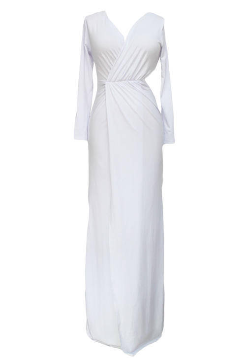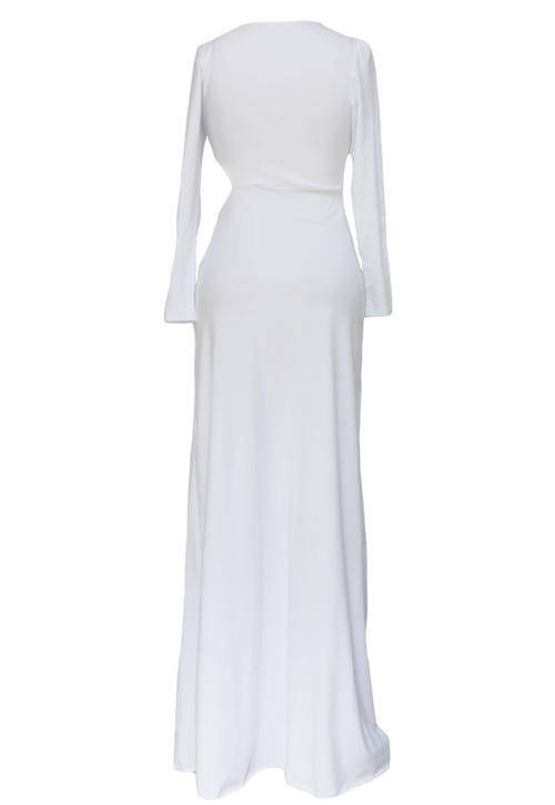 ELEGANT WHITE LONG SLEEVE EVENING DRESS