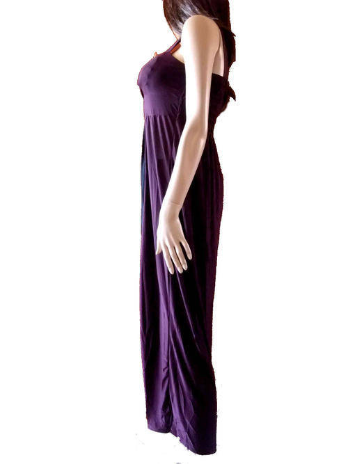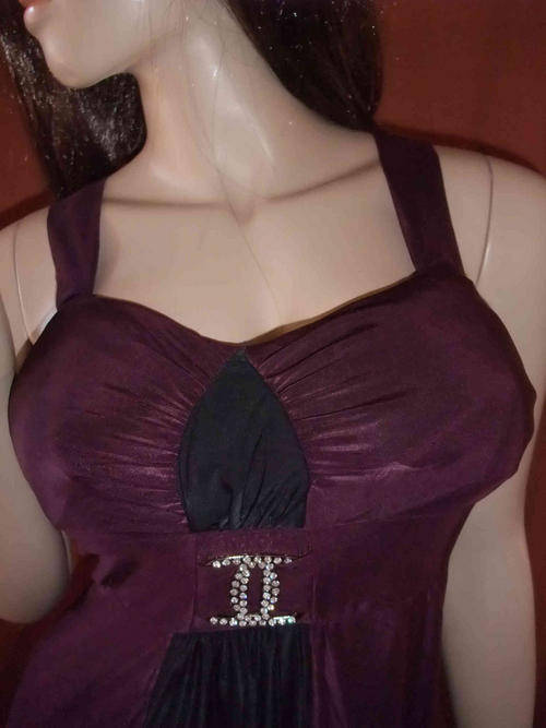 Elegant Wide Strap Maxi Dress Diamante Buckle Purple/Black 32/34