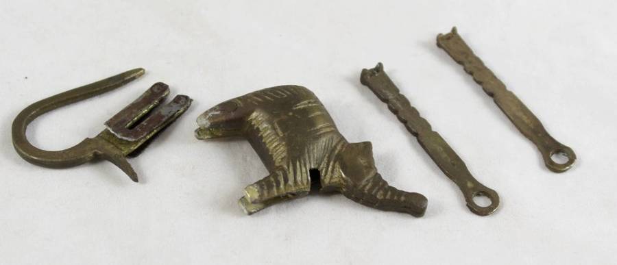 An absolutely gorgeous old metal elephant lock. It is in good condition and will make a lovely addition to your collection. The lock measures 4cm high.