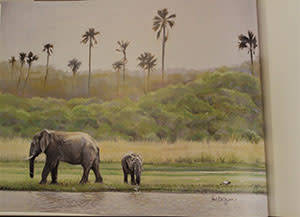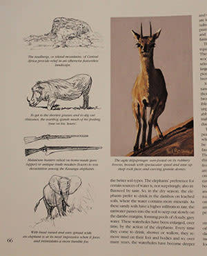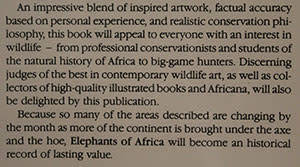 A beautiful book which includes 24 prints of beautiful pastel drawings of Elephants in their habitats throughout Africa. It also includes drawings of other wildlife which shares the habitats of the elephants. A fascinating book to browse through!!