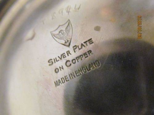 STAMPS/MARKS ETC : THE JUG/PITCHER IS STAMPED UNDERNEATH WITH THE EAGLE MARK AND - "SILVER PLATE ON COPPER, MADE IN ENGLAND"
