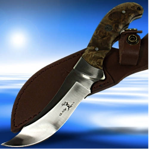 Elk Ridge Fixed Blade Hunting Knife with Burl Wood handles.