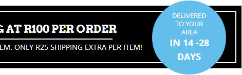 R35.00 Standard shipping using one of our trusted couriers applies to most areas in South Africa. Some areas may attract a R30.00 surcharge. This will be calculated at checkout if applicable.