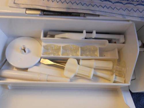 ALSO A NICE ACCESSORY BOX BUILT IN ON TOP OF THE MACHINE