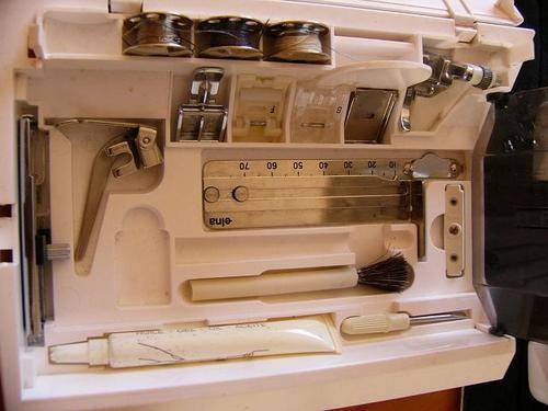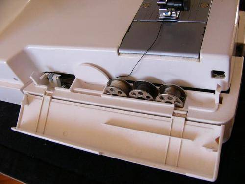 SLIDE ON ACCESSORY BOX WITH EXTRA BOBBINS AND PRESSER FEET INCLUDED