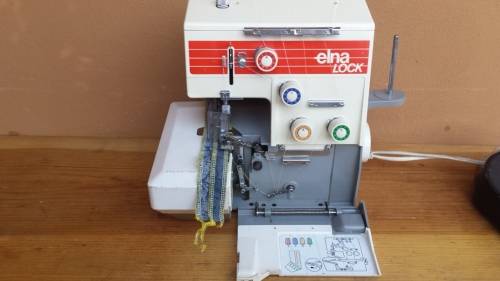 Elna Lock L4 overlocker. Just been serviced, easy to thread and easy to use. Four thread overlocking, smooth running, lovely stitches and in a very very good condition.