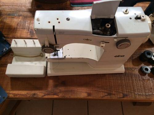 This trusty sewing machine is in search of a new home. As you can see from the photos it still has its stitch rings which enables you to create different types of stitches. It is however missing the normal foot for sewing and a good service might be in order. It comes with the VERY sturdy carry case and foot pedal.