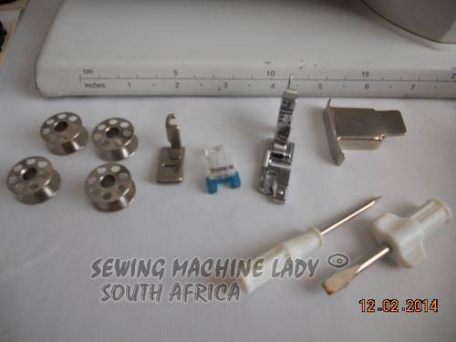 4 PRESSER FOOT & 5 BOBBINS & SCREWDRIVERS