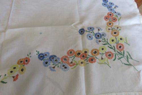Cheerful embroidered square cotton tablecloth. It has one small blue mark (see photo). 104 x 104 cm