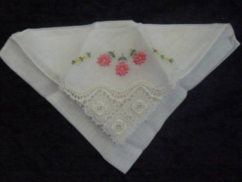VERY PRETTY VINTAGE COTTON EMBROIDERED HANKIE