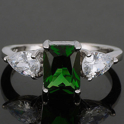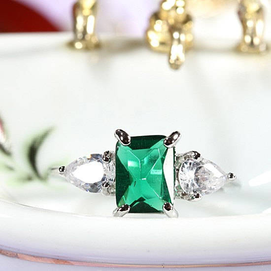 Emerald Cubic Zirconia 18K Gold Plated Silver Tone Engagement Ring - Size 8