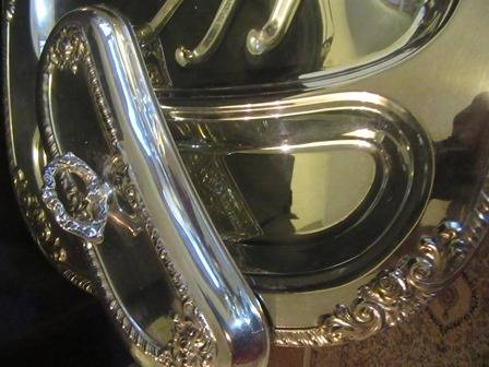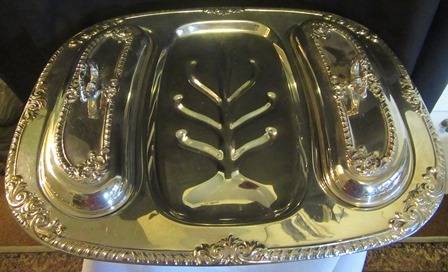 Silverplate Meat & Vegetable Platter backstamped Silverplate EMESS, the platter has two kidney shaped compartments for Vegetables with lids. Size: 46cm x 36cm