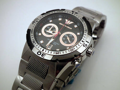 Brand Emporio Armani Mfg. Reference AR-0690 Gender Mens Case S/Steel Bracelet / Strap S/Steel Movement Quartz Water Resistant 30 m. Case Diameter 46 mm. inlcuding crown Dial Black Crystal Mineral Crystal Type: Stopwatch / Chronograph Condition New Warranty 12 months dealer