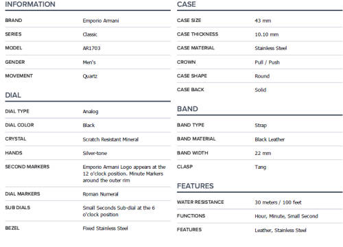 NEW EMPORIO ARMANI AR1703 CLASSICO IN EMPORIO ARMANI BOX WITH MANUAL. New display model, still with back plastic cover.