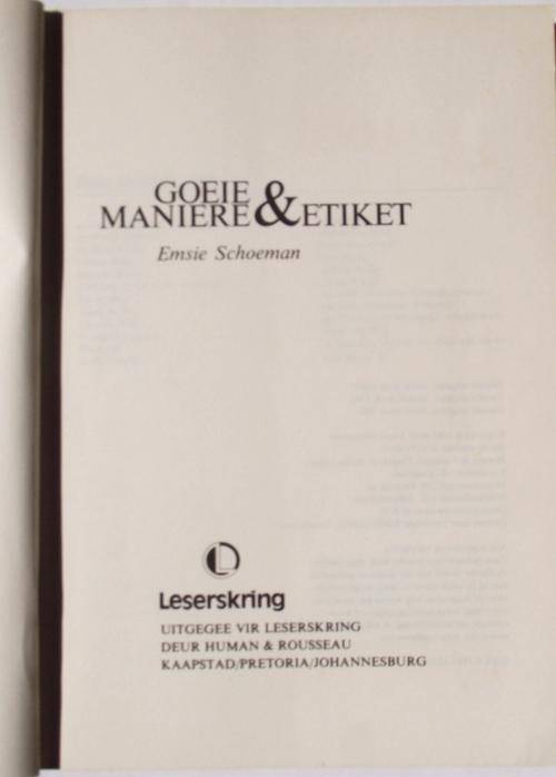 Emsie Schoeman: GOEIE MANIERE & ETIKET (1983 Uitgawe)