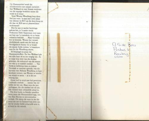 Postal option 1 SA Buyers only Overseas buyers INCLUDING NAMIBIA please note Postage to be quoted before completion of order! No SA postal rates applies to overseas orders.Kyk ook na my ander Afrikaanse boeke, comics, fotoverhale en tydskrifte
