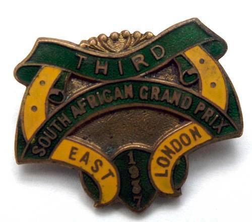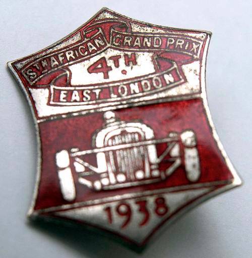 A very nice pair of pinned enamel badges from the 3rd and 4th SA Grand Prix, held in East London in 1937 and 1938. Both are in excellent shape (I haven't attempted to clean them, so as not to cause any damage).