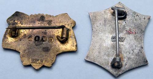 The one from 1937 was made by Gaunt of London, and has the number "4009" stamped on the back (possibly an official's badge?).