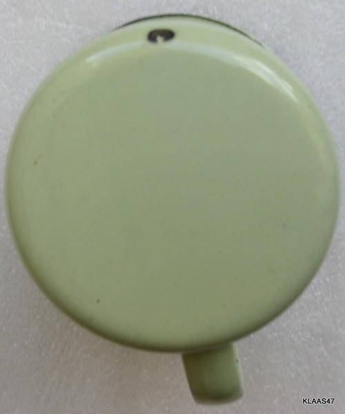 ENAMEL MUG : GREEN WITH BLACK RIM : 9cm DIAMETER
