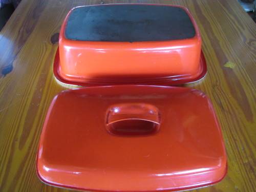 This stunning Roasting Dish is in great condition. Excellent for Family get togethers. Holds 2 large chickens! Will last you a lifetime.....A few minor scratches from wear and tear. It is 45cm long, 30cm wide and 10cm in height excluding lid. The lid is 5.5cm in height. Heavy... Postage & packaging R100