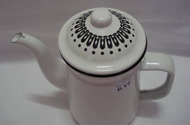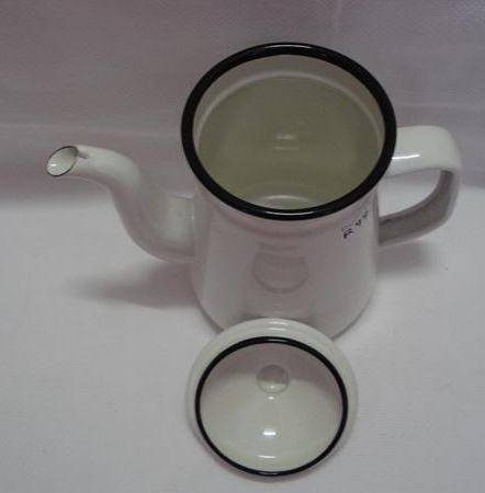 What a stunning find!! Up for auction is this Enamel White Coffee Pot. the Lid is decorated.