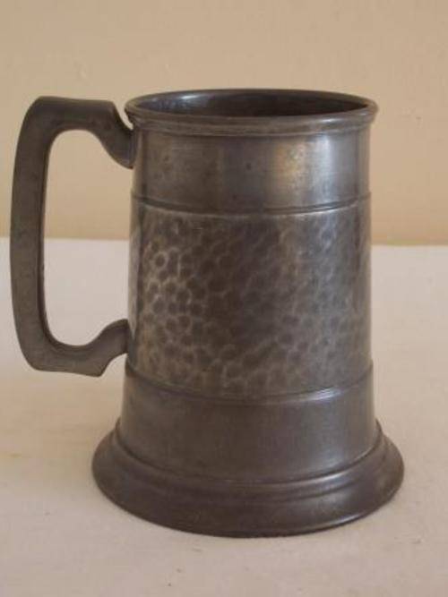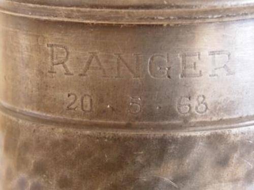 ENGLISH PEWTER GLASS BOTTOM MUG WITH INSCRIPTION RANGER 20.5.68. HEIGHT 12.5cm SHIPPING COSTS R50.00