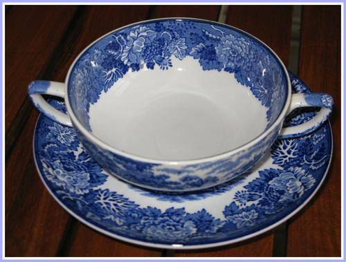 ENOCH WOOD'S 'English Scenery' consomme` soup bowl and under plate.