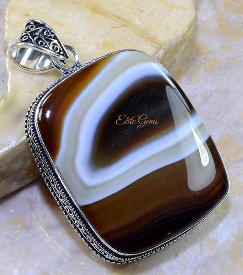 FANTASTIC BOTSWANA AGATE ANTIQUE DESIGN PENDANT 2 1/2" |