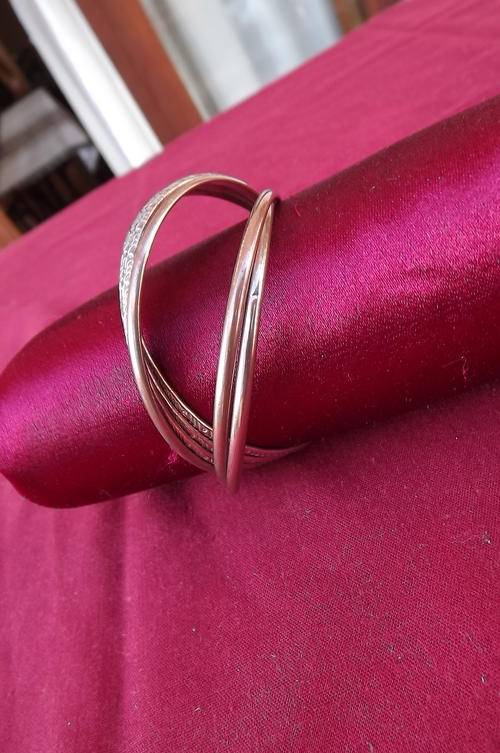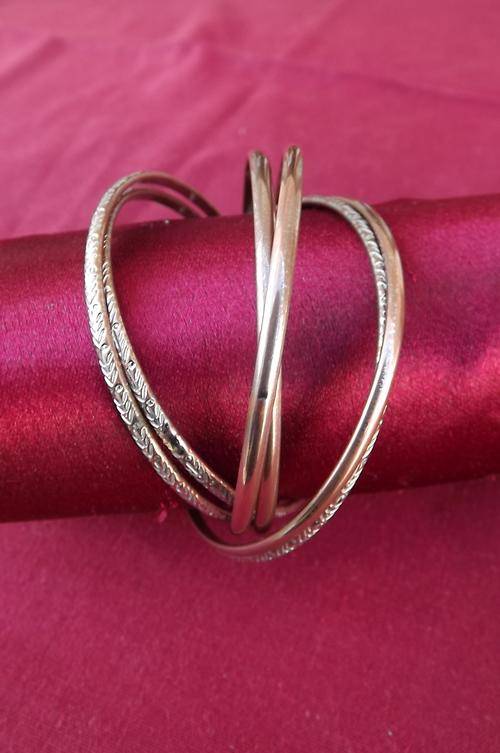 Entangled set of metal bangles 7.2 cm diameter.Copper & brass