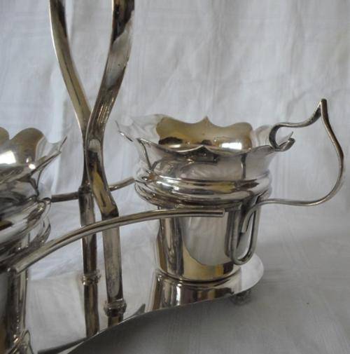 EPNS MILK JUG AND SUGAR BOWL ON STAND - ALSO HALLMARKED SMALL SPOON