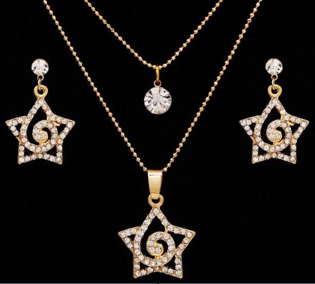 Equisite 18 Carat Yellow Gold Plated Star Shaped Double Layer Juwellery Set with Swarovski Crystals