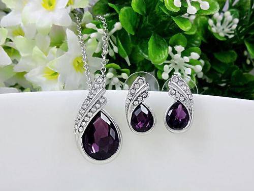 Equisite Sterling Silver Double Layer Purple Crystal Teardrop Shaped Juwellery Set
