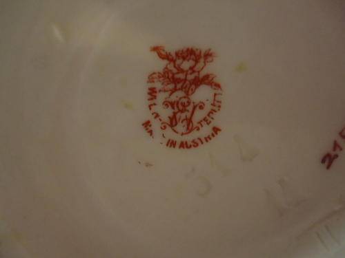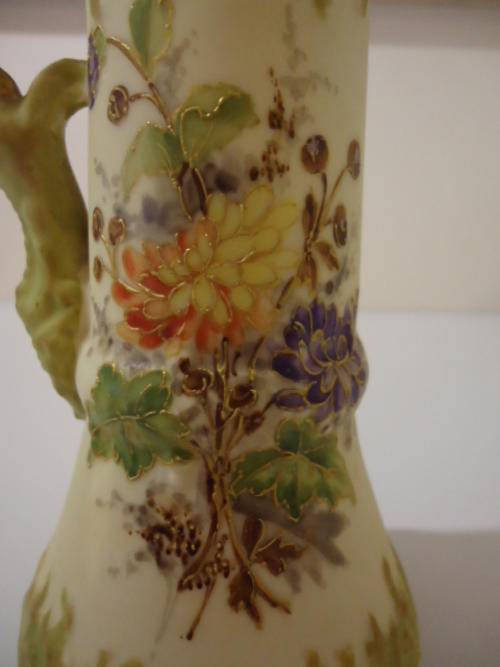 A VERY ELEGANT TALL JUG FROM ERNST WAHLISS c1900 IT IS IN SUPERB CONDITION AND STANDS 23cm HIGH. IT IS HAND PAINTED WITH TUBE LINED GILDING.