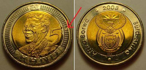 ERROR COIN - 2008 MANDELA BIRTHDAY R5 COIN NATURAL TONING AND UNTOUCHED