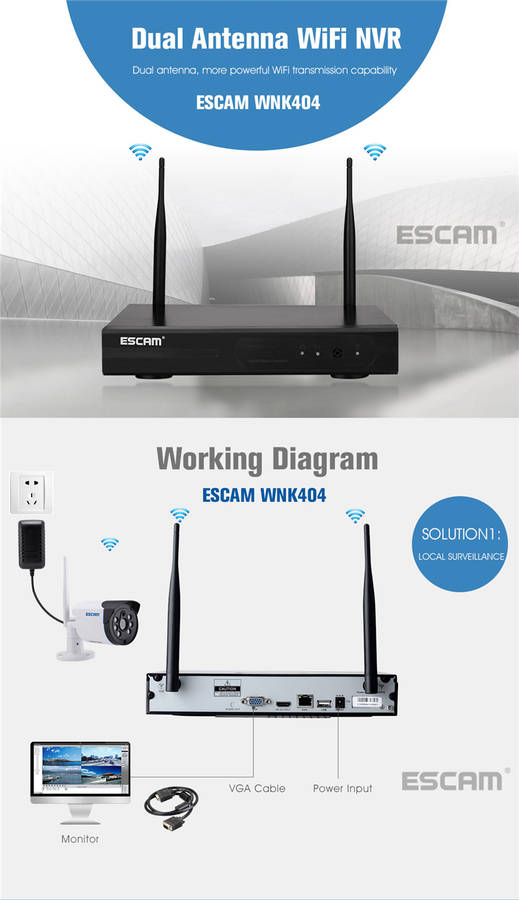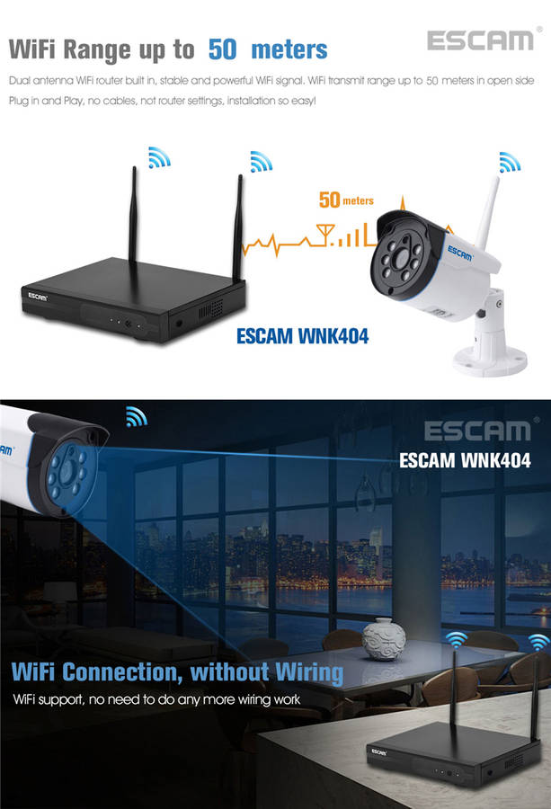 ESCAM WNK404 4CH 720P Outdoor IR Video Wireless Surveillance Security IP Camera ESCAM WNK404 4CH 720P Outdoor IR Video Wireless Surveillance Security IP Camera