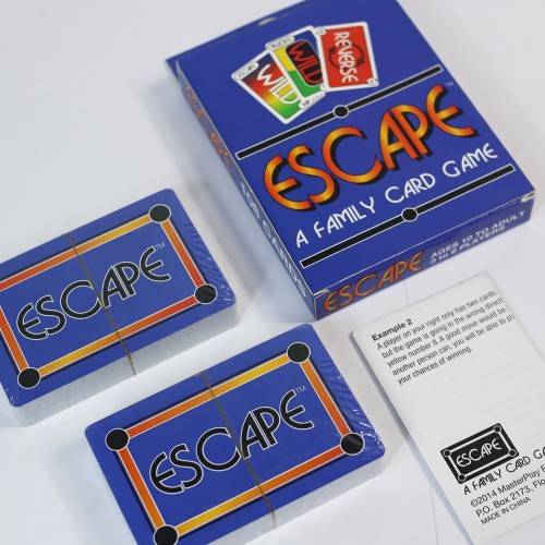 Each player attempts to play 1 card from their hand by matching the color, number or word with the card on top of the discard pile. When you get down to one card, yell "ESCAPE"