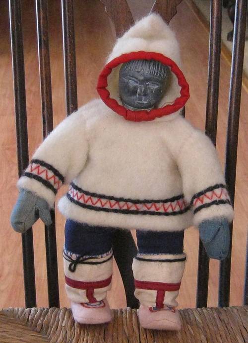 ESKIMO DOLL - 1950s INUIT ESKIMO DOLL WITH CARVED SOAPSTONE HEAD from ALASKA