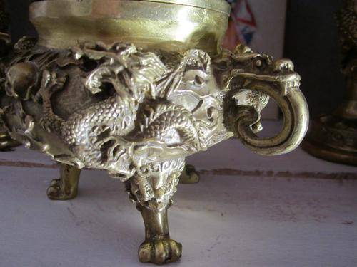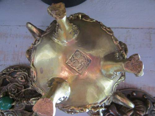 BRASS JADE BALL CHINESE DRAGON INCENSE BURNER. ALTHOUGH LISTED AS SECONDHAND, THIS ITEM FORMED PART OF A PERSONAL COLLECTION AND WAS NEVER ACTUALLY USED.