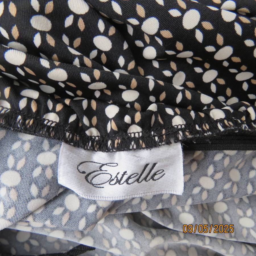 ESTELLE gored stretch polyester skirt in black with white-cream print. Size 42